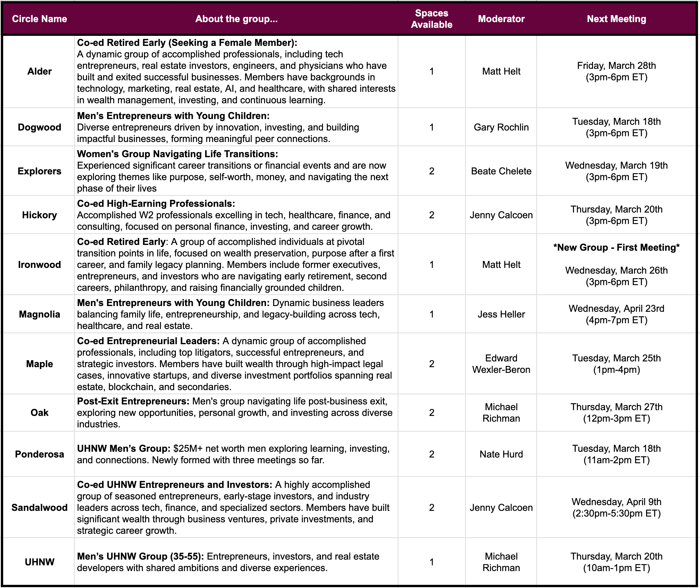 Trusted Circle! We are excited to offer waitlisted members the opportunity to step into an already-established Circle. These groups are carefully curated, providing a structured space for meaningful discussions with like-minded peers. Your information helps us match you with the group that best aligns with your preferences, schedule, and interests.